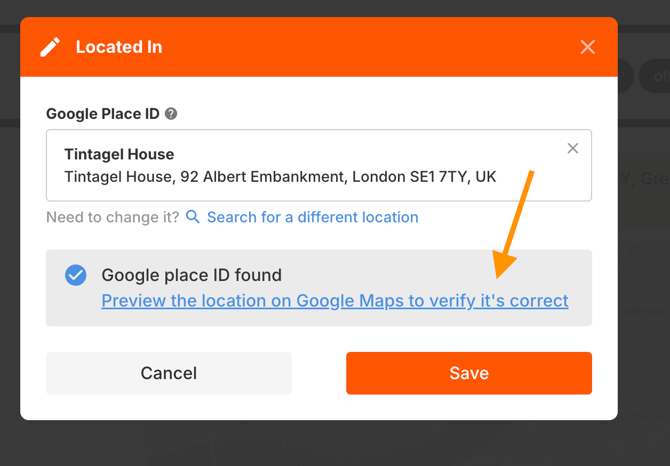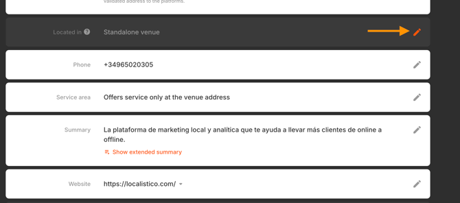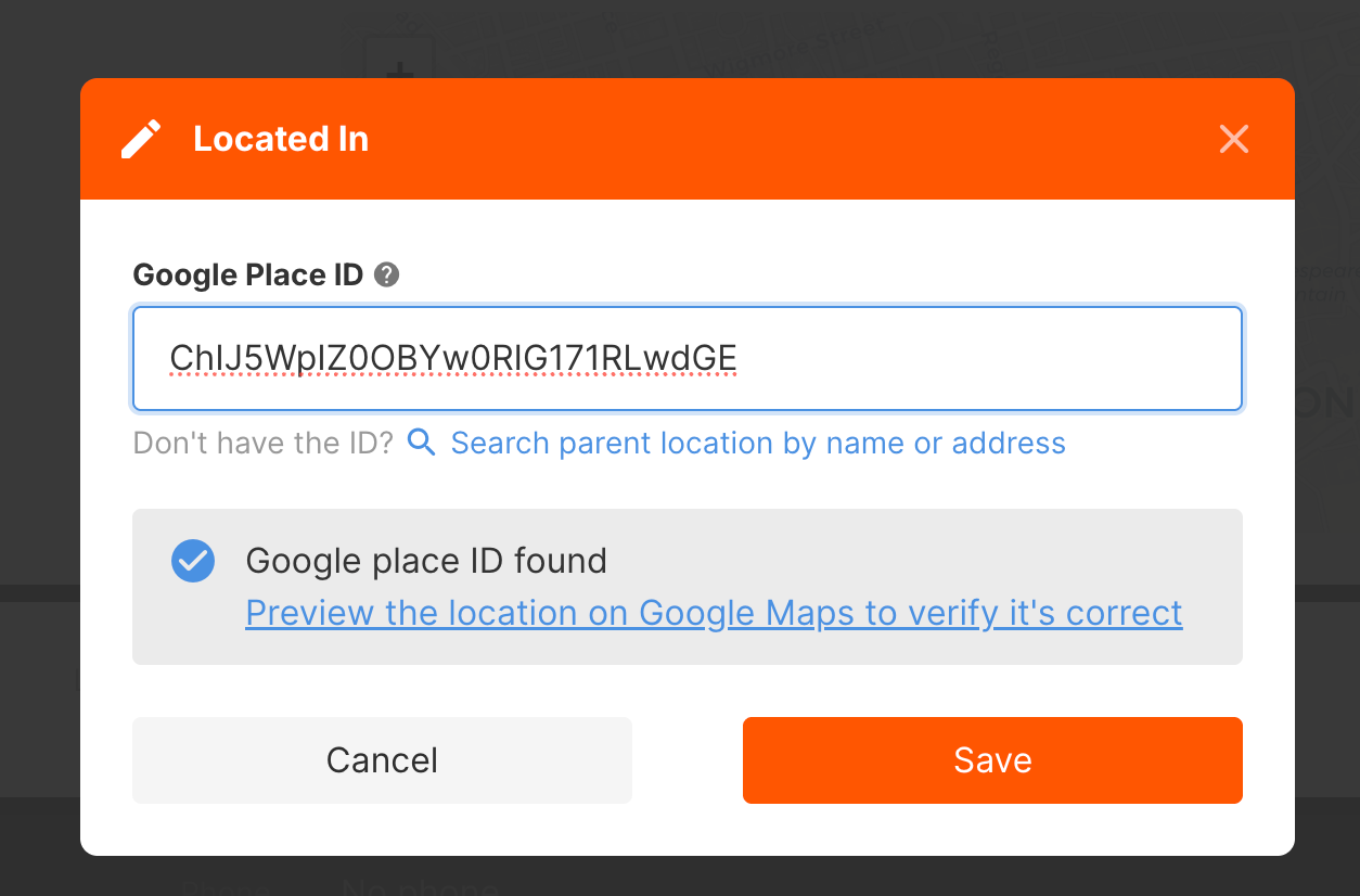 2. Click the Edit button and enter the Google Place ID of the parent location.