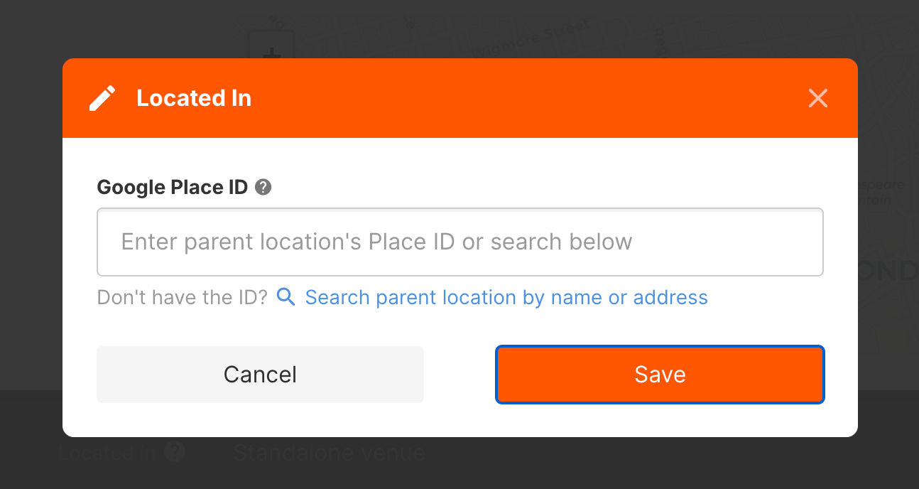 If you don’t have the Place ID, you can search for the parent location by name or address. Once selected, the system will automatically populate the Place ID.