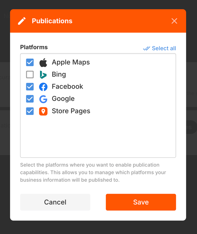 Select the platforms where you want to publish your business information.