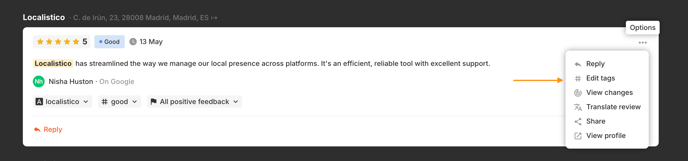 Have you ever received a review and thought it should be directed to a different department for feedback? While it may not be practical to do this for every single review related to marketing campaigns or store hours, you can streamline the process by tagging your reviews. This allows you to categorize them efficiently, making it easy to export the relevant reviews later and forward them to the appropriate departments based on these tags.