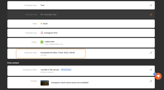 The next step is to set the publication date. If you leave this empty, the campaign publishes when you click on the "publish post campaign".