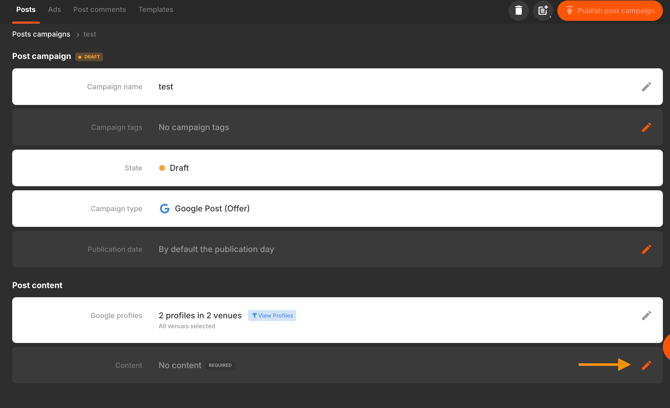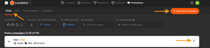 1. Go to the Post Campaigns section and click Create post or edit an existing draft.