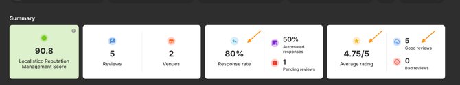 The Localistico Reputation Management Score is calculated using the following metrics: