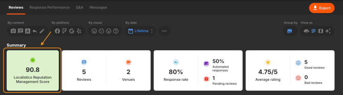 This score is not public or visible on external platforms like Google. It is an internal Localistico metric that aggregates multiple data sources to assess the health of your reputation management.
