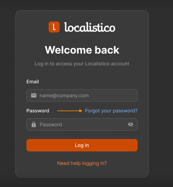 1. Go to the Localistico logging page and click on "Forgot your password?":