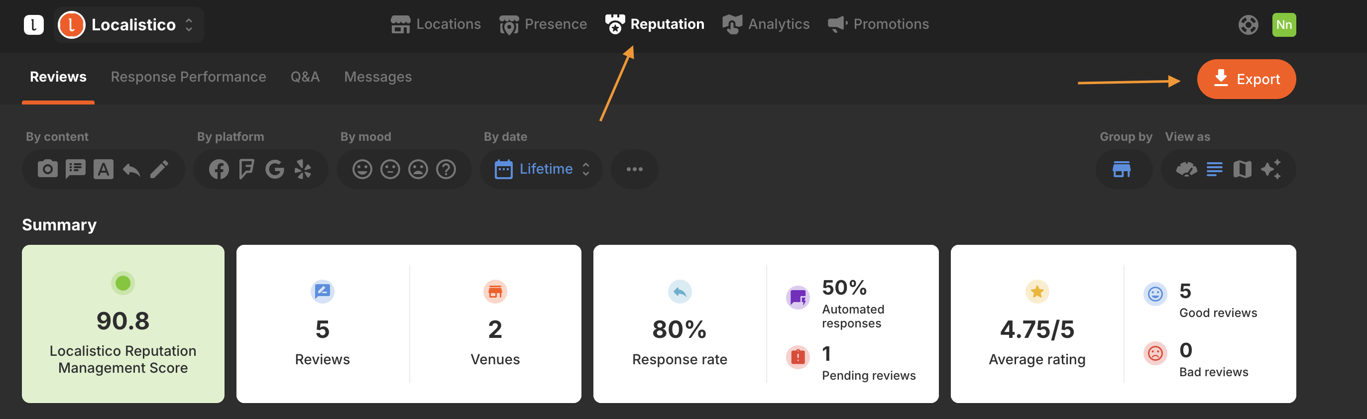 Reviews can be conveniently exported in either CSV or Excel file formats through the following methods: